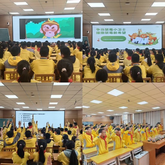 为进一步加强青少年毒品预防教育工作,提升小学生识毒、防毒、拒毒的意识和能力,筑牢校园禁毒安全防线,12月1日,石家庄市第二强制隔离戒毒所民警走进新华区联盟路小学,为广大师生上了一堂别开生面的禁毒宣传教育课。联盟路小学五、六年级100余名师生现场听课,2000余名师生通过多媒体教学系统观看授课。