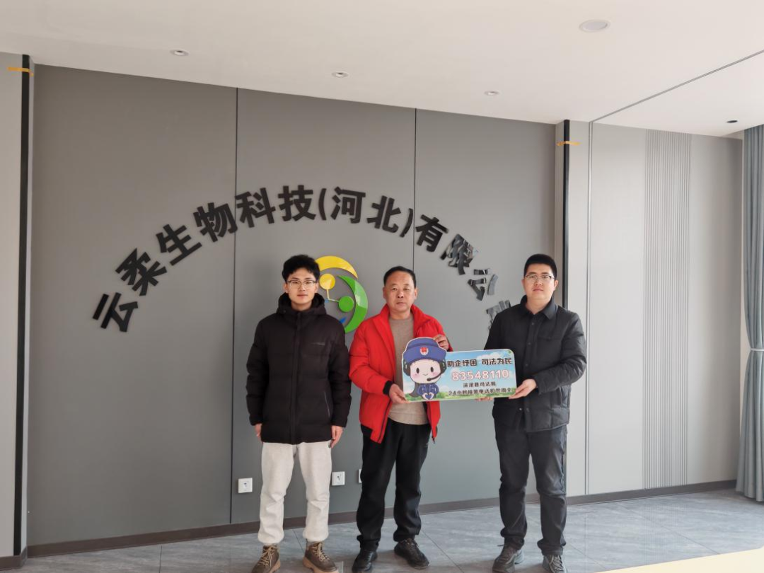 为筑牢企业法治根基,优化法治化营商环境,12月24日上午,深泽县司法局组织工作人员深入石家庄市深泰化工有限公司、云柔生物科技(河北)有限公司、河北盛驰鹏辉新型建材有限公司,开展“送法入企”专项服务活动,通过精准普法为企业纾困解难、赋能提质。